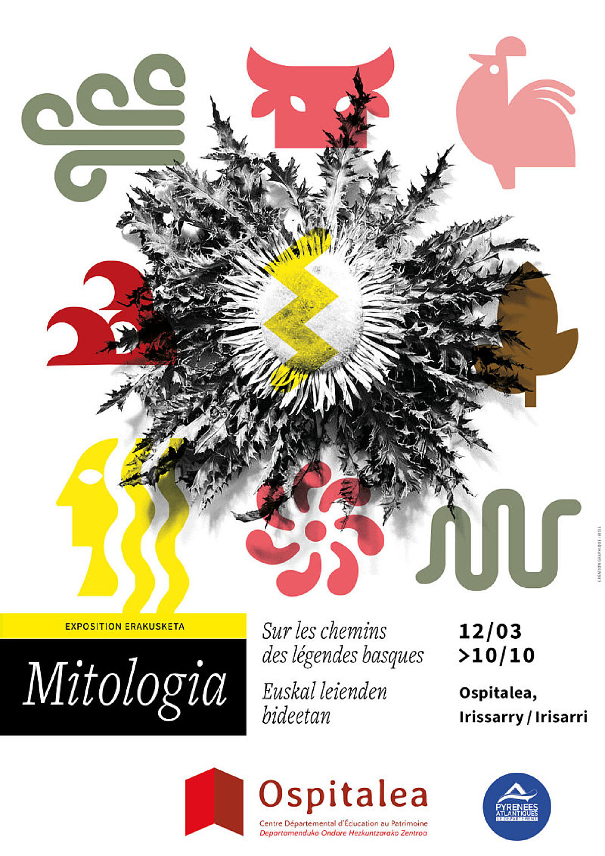 Du côté d’Hendaye, le Centre Départemental d’Éducation au Patrimoine (CDEP) Ospitalea propose aux visiteurs de franchir les frontières du réel avec sa nouvelle exposition : « Mitologia : sur les chemins des légendes basques ». À travers un parcours où l’imaginaire rencontre la rigueur scientifique, l’exposition s’emploie à rendre accessible l’état de la recherche actuelle sur un patrimoine souvent méconnu ou réduit à la littérature enfantine. Si les figures de Mari, du Basajaun ou des Lamina incarnent toujours les forces de la nature et l’identité du territoire, la transmission orale qui assurait leur vitalité s’est aujourd’hui fragilisée. Pour y remédier, l’exposition propose une immersion totale, assurée par une scénographie poétique et des archives sonores issues d’un vaste recueil de contes traditionnels.