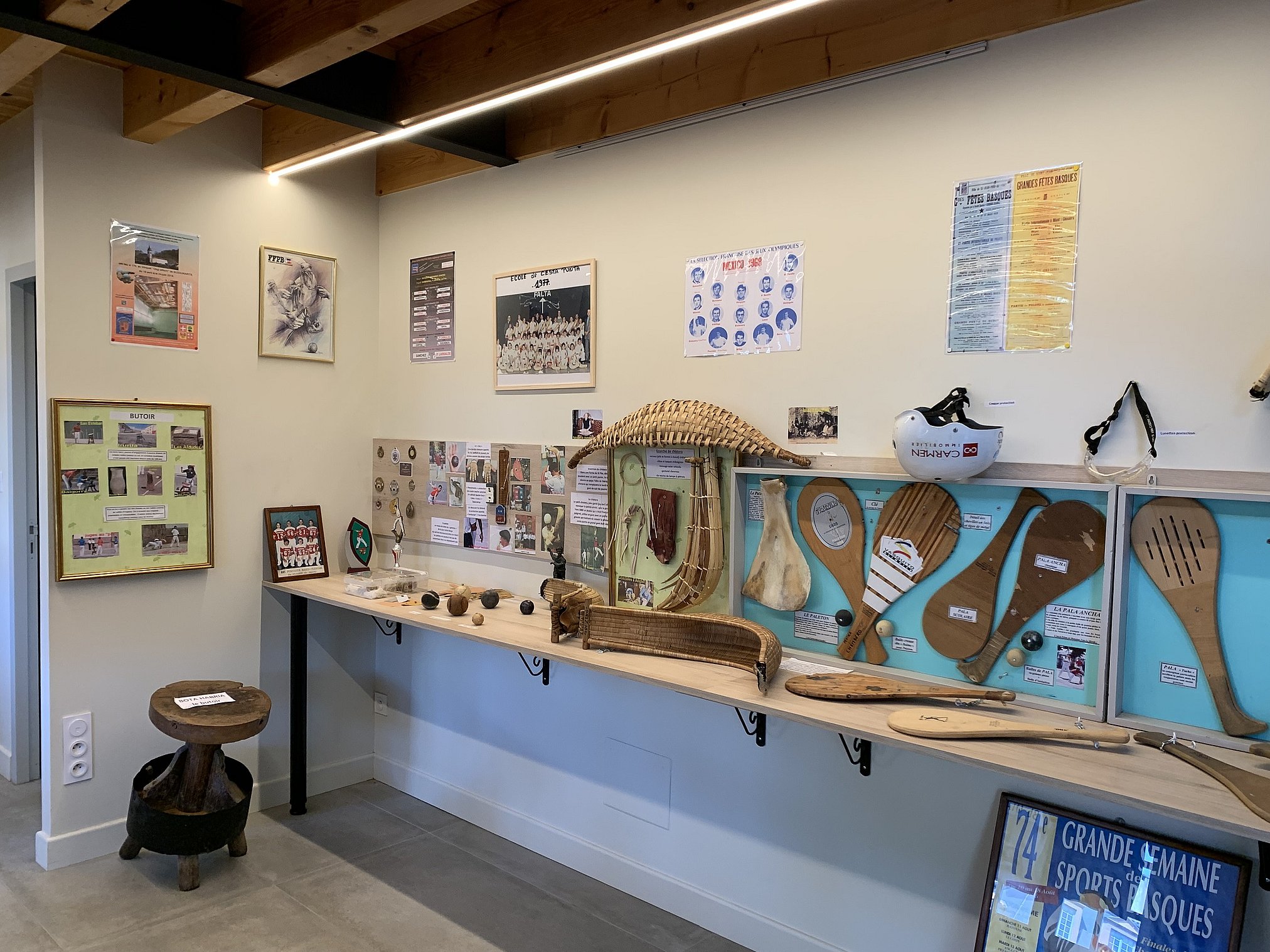 Jacques l’assure : « Quand j’étais plus jeune, il y avait un musée de la pelote basque. Je suis donc ravi qu’il revienne aux sources, puisque Saint-Jean-Pied-de-Port est le fief de la pelote ». Ouvert le 10 juillet dernier, le musée est encore en rodage. Au rez-de-chaussée, de nombreux objets sont exposés. Et la force de l’endroit, c’est d’en avoir fait un lieu véritablement ludique puisque le visiteur peut toucher ces objets. « Cette idée d’en faire un musée tactile plaît beaucoup. Mais pour éviter que des objets ne soient dérobés, nous avons décidé de les attacher », explique Jacques. « La perception d’un musée passe d’abord par les sens », rajoute Pierre Sabalo, qui s’est inspiré de ce qu’il avait vu au Québec. À l’étage, les visiteurs pourront toujours admirer des objets issus du monde de la pelote basque. Mais pas uniquement puisqu’il est diffusé un film d’une dizaine de minutes réalisé par Jacques et son fils. Il permet au visiteur d’en apprendre plus sur la discipline, ses différences, les étapes de fabrication des pelotes…