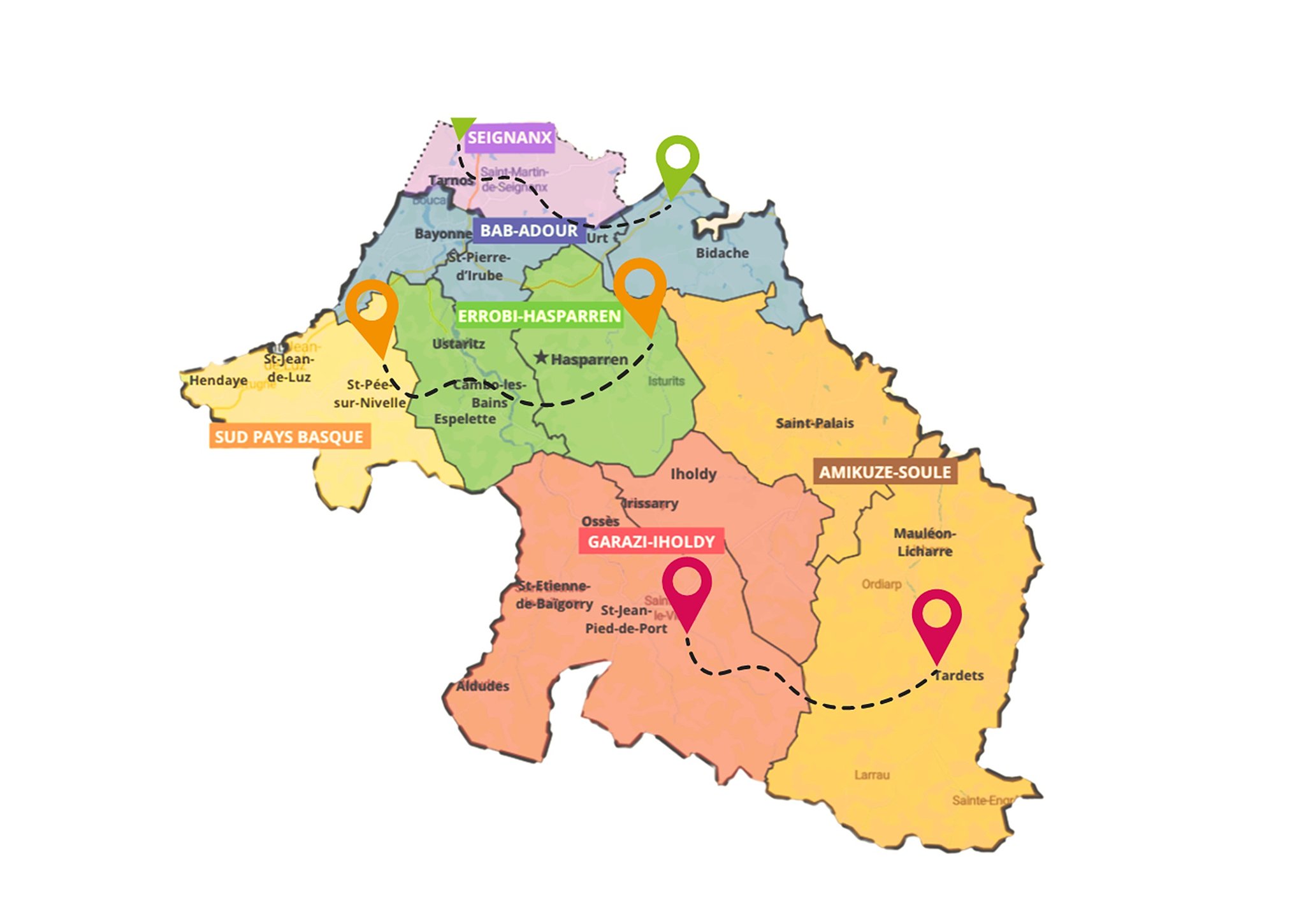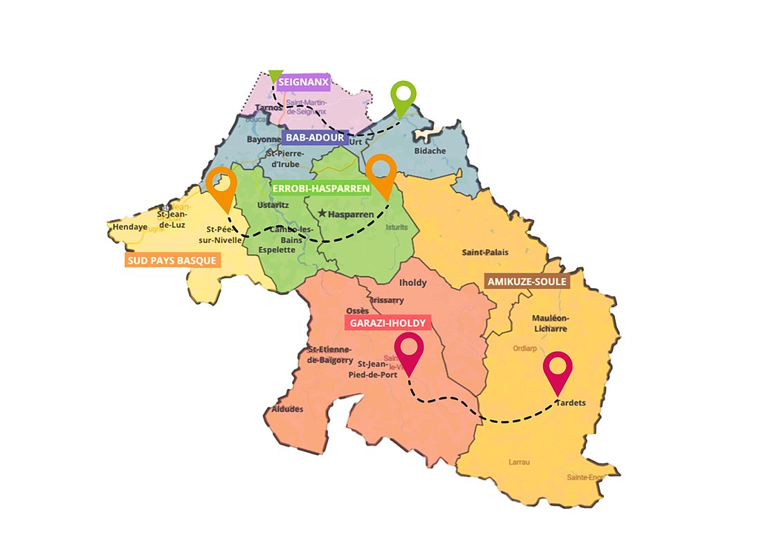 Les participants travailleront en immersion sur plusieurs territoires : 1/ Côte Basque Adour et Pays du Seignanx, 2/ Sud Pays Basque transfrontalier et Pays d’Hasparren–Errobi, 3/ Xiberoa, Amikuze et Garazi.